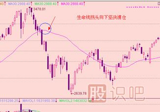 從上圖可以看到,從3478點開始的調(diào)整擊破生命線,大盤在3200點處生命線拐頭向下,此時投資者要及時減倉,雖然僅以生命線操作來看還是沒能第一時間逃頂,但也在一定程度上避免了不少損失,從上圖看,后市大盤繼續(xù)跌了600點。